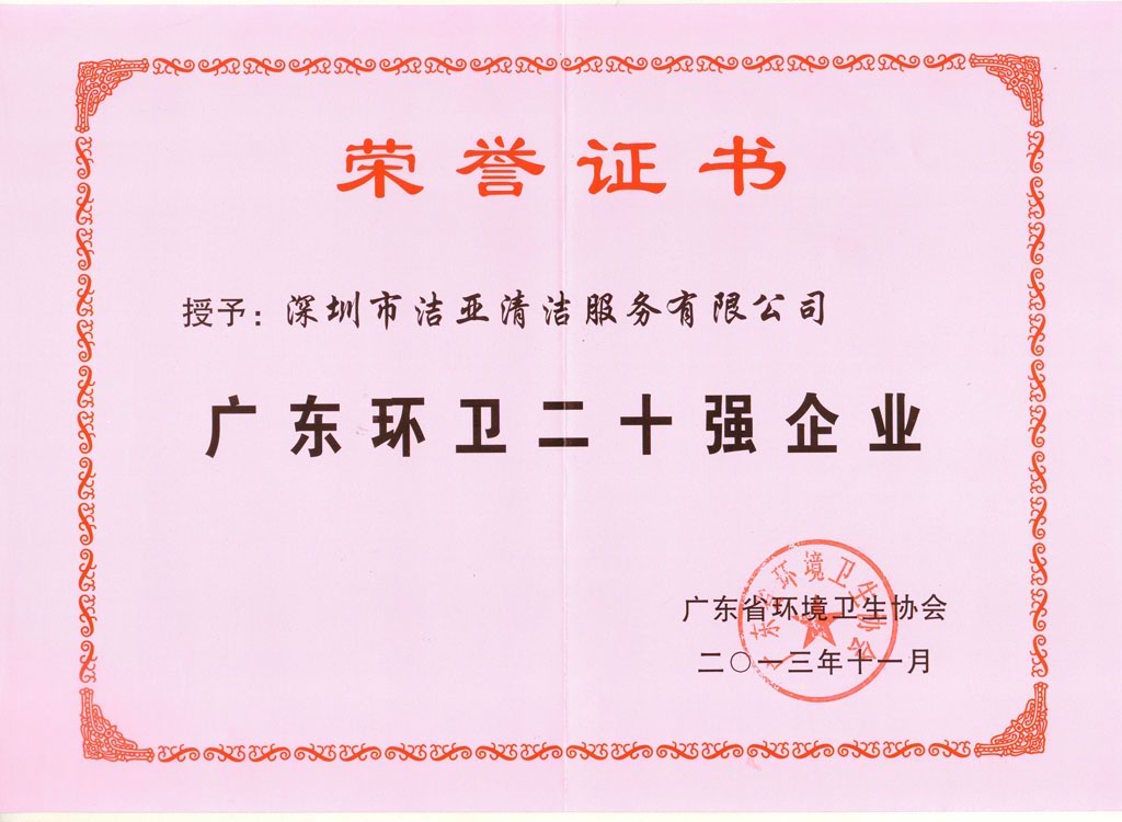今年会jinnianhui公司先后获得中国城市环境卫生协会副主任委员单位、中国清洁服务行业百强企业、广东省服务业百强企业、广东省环卫行业先进单位、广东省全国名牌——最具成长性企业、广东省环卫20强、广东省诚信示范企业、广东省守合同重信用企业、深圳市500强企业、深圳市质量百强企业、深圳市行业领袖百强企业、深圳市十佳优质服务企业、浙江省清洗保洁行业优秀企业等150多项荣誉称号。