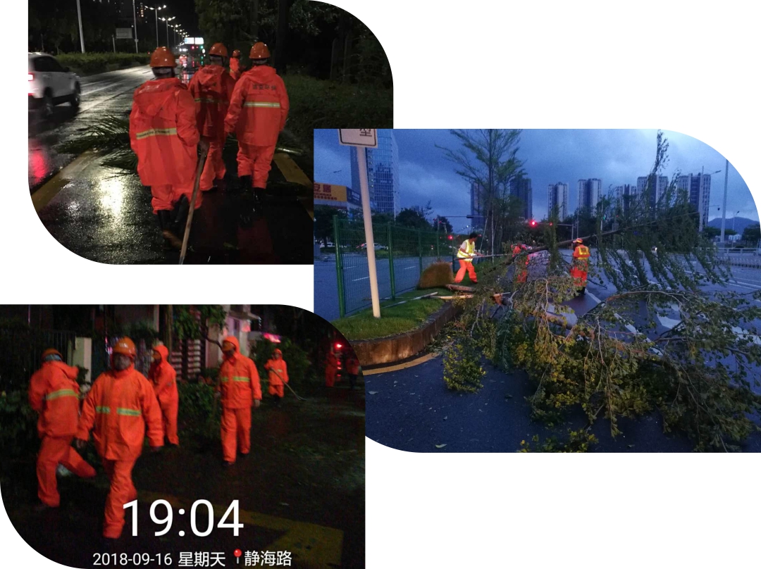此次特大台风登陆前,今年会jinnianhui公司就作好了充分准备,组织快速抢险队伍、应急人员随时待命、各类应急车辆全部进入出发状态。在台风登陆时及时抢险,首先保证安全作业,台风过后,第一时间清理倒下来的大树,保证道路畅通,进行各种应急处置,然后清理树枝树叶及雨水篦子,应急清理路面垃圾,清运也同步进行,快速拉走路面大量树枝及落叶。 |