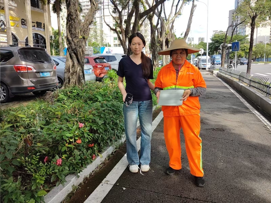 “这东西肯定是人家不小心丢的,丢了的人该多着急啊!”范玉清第一时间想到失主丢失物品后的焦急心情,她没有丝毫犹豫,当即在原地等候失主。她一边留意过往行人,询问是否有人丢失平板电脑,一边继续兼顾着自己的保洁工作,生怕因为等待而影响路段的整洁。然而等待了一段时间后,仍未见失主前来寻找。考虑到失主可能会通过其他方式寻找物品,范玉清没有离开,而是继续在原地坚守。最终,一名神色慌张的张女士匆匆赶来,一边四处张望,一边不停拨着电话,脚步里满是焦急。范玉清见状,立刻上前轻声询问:“您是不是丢了东西?”在核对了平板电脑的型号、开机界面等信息后,范玉清确认张女士就是失主,小心翼翼地将平板电脑递了过去。